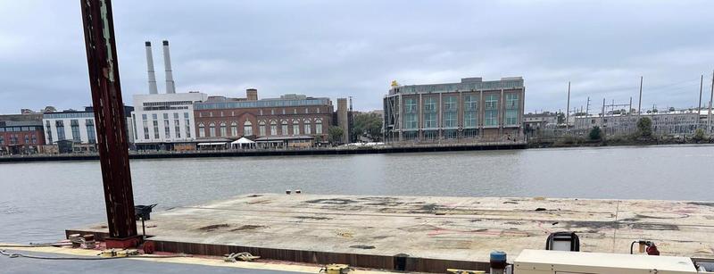 150ft by 50ft by 12' Crane-Spud Barge with a 4600 Manitowoc (reported operational?), deck needs to be cleared and needs internal work in the bow ...
